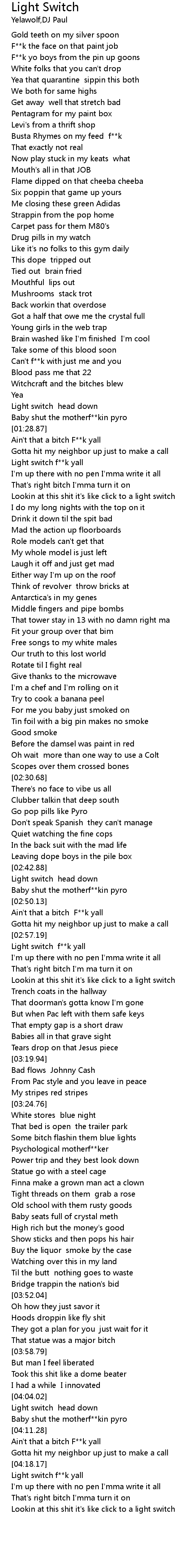 | [04:18.86] | Light switch f**k yall |