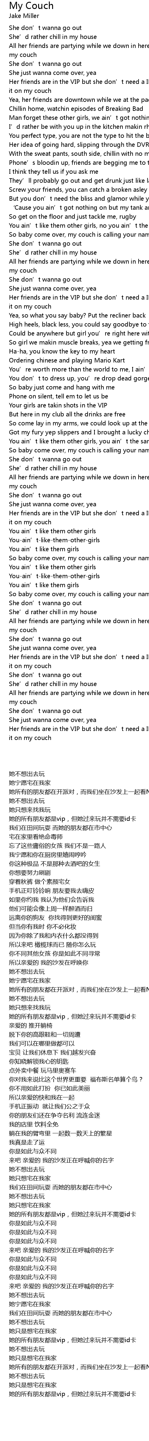 | [00:23.37] | Her friends are in the VIP but she don' t need a ID to come and kick it on my couch |