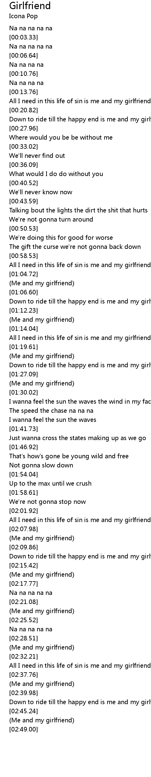 [01:22.47] Down to ride till the happy end is me and my girlfriend