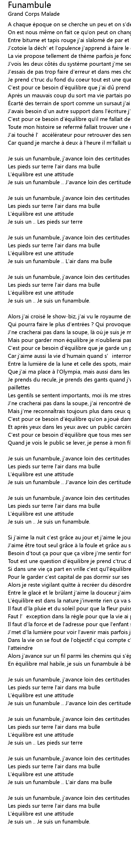 | En e quilibre mal habile, je suis un funambule a be quilles | |