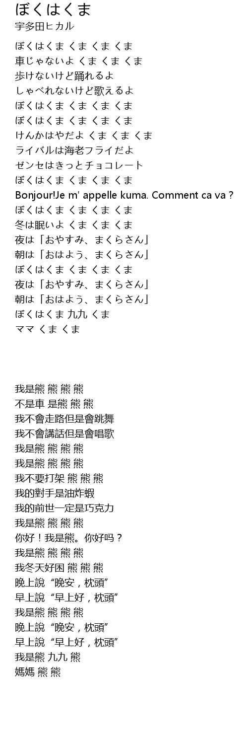 | 歌曲 | ぼくはくま |