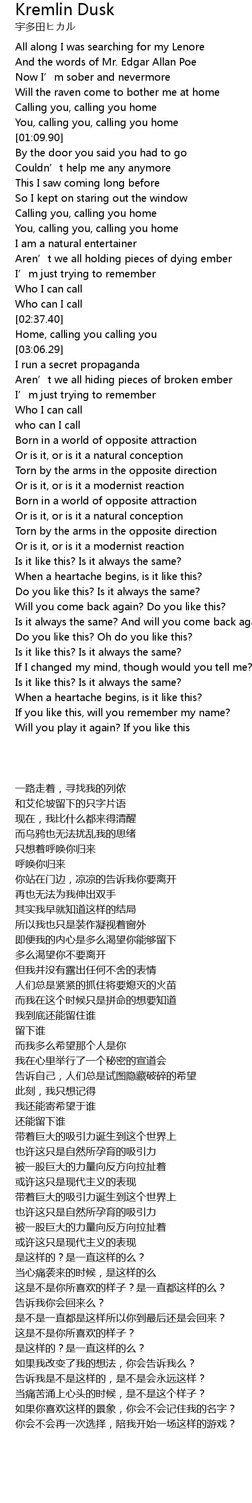 | [00:42.50] | Will the raven come to bother me at home |