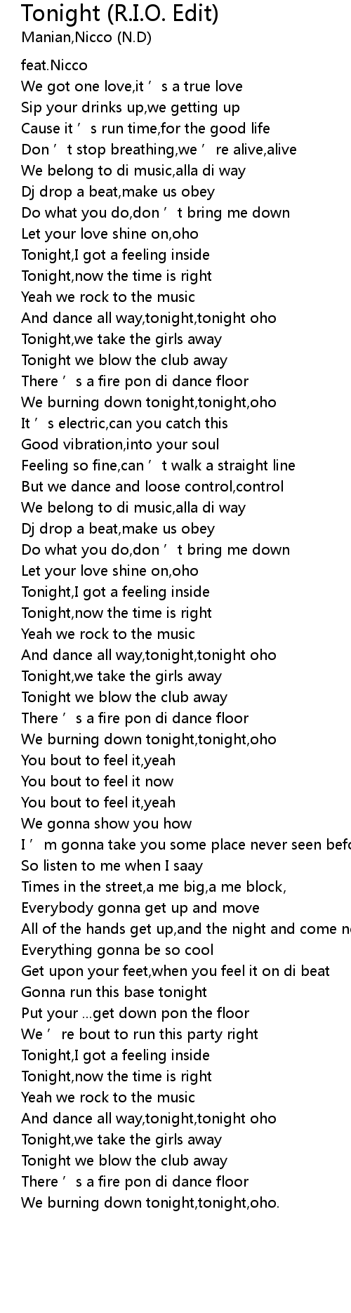| 歌曲 | Tonight (R.I.O. Edit) |