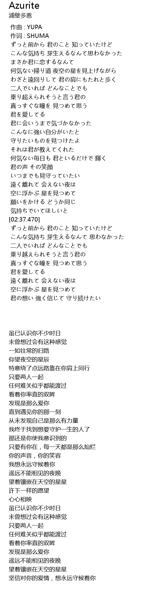 | [02:27.410] | 願いをかける どうか同じ |