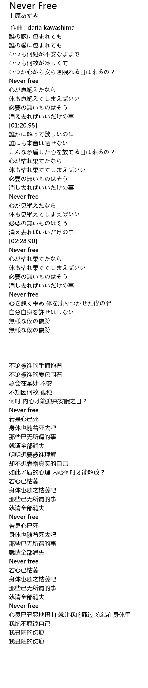 | [03:15.95] | 心灵已丑恶地扭曲 就让我的罪过 冻结在身体里 |