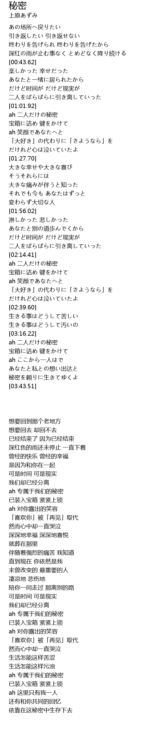 | [03:36.20] | 秘密を頼りに生きてゆくよ |