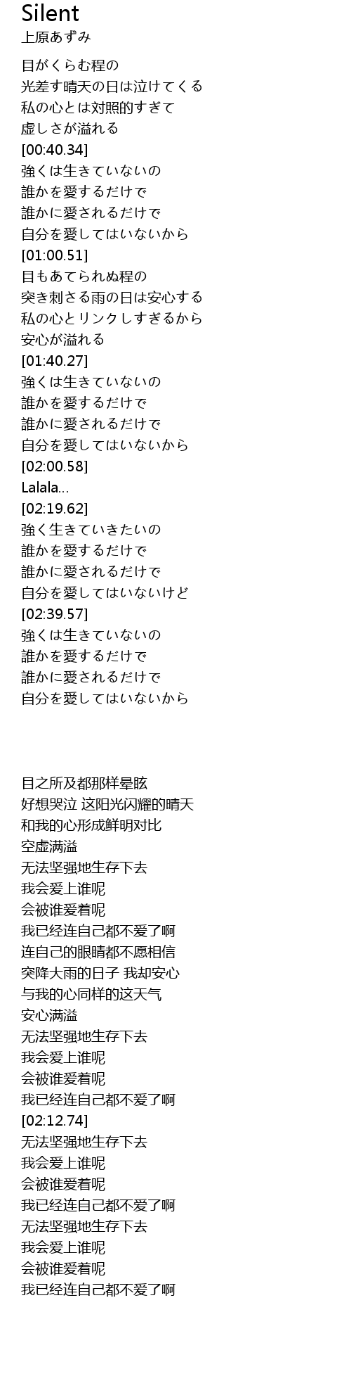 | [02:40.59] | 无法坚强地生存下去 |