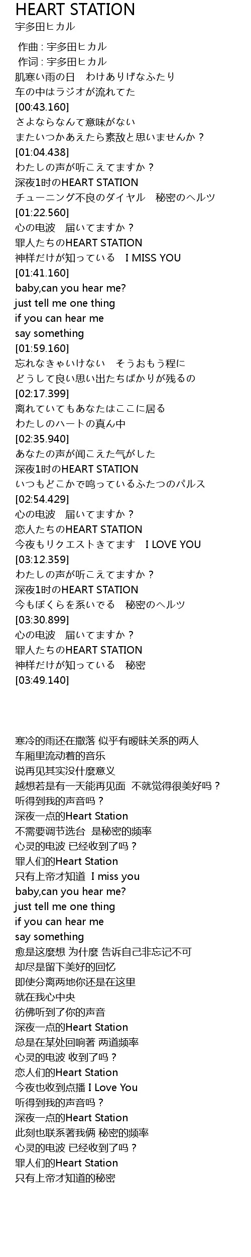 | [02:58.920] | 恋人们的Heart Station |