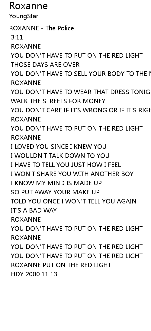ROXANNE PUT ON THE RED LIGHT |