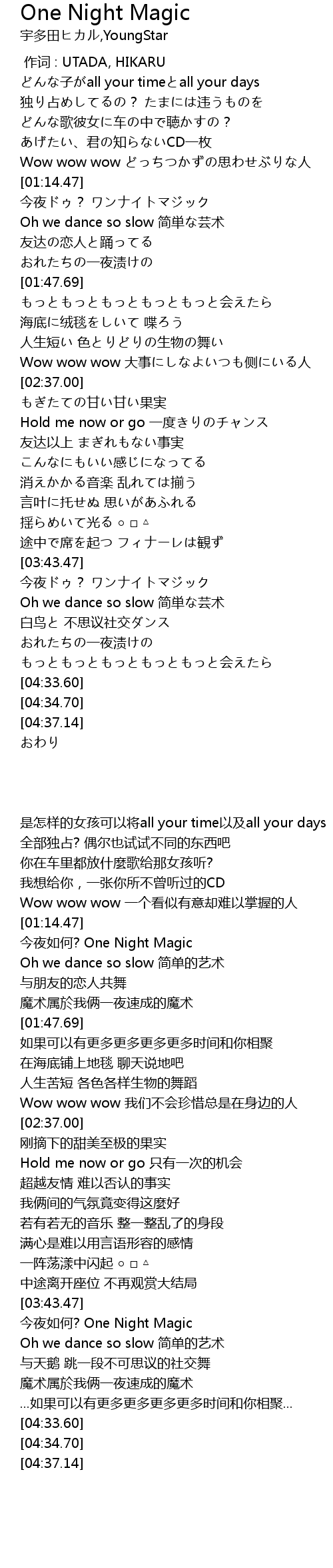 | [01:14.92] | 今夜如何? One Night Magic |