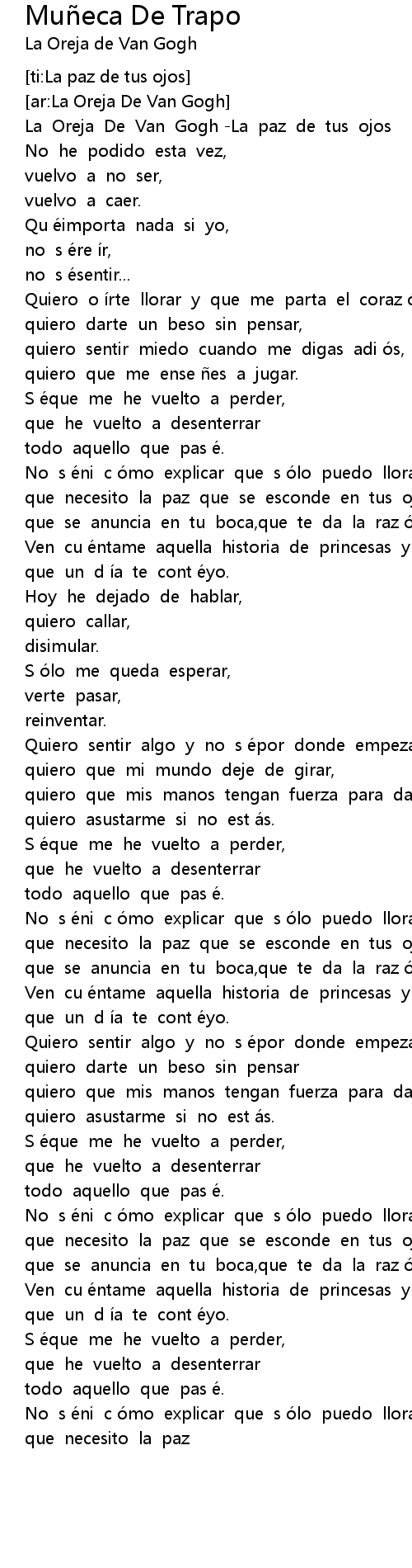 | [00:01.31] | La Oreja De Van Gogh La paz de tus ojos |
