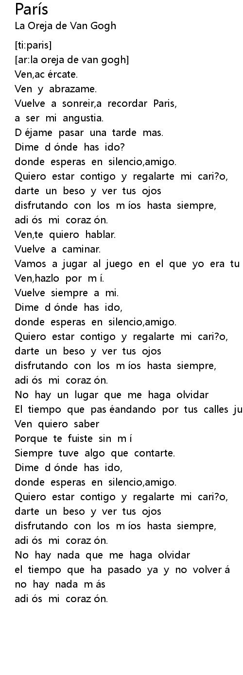 | [00:17.39] | Vuelve a sonreir, a recordar Paris, |