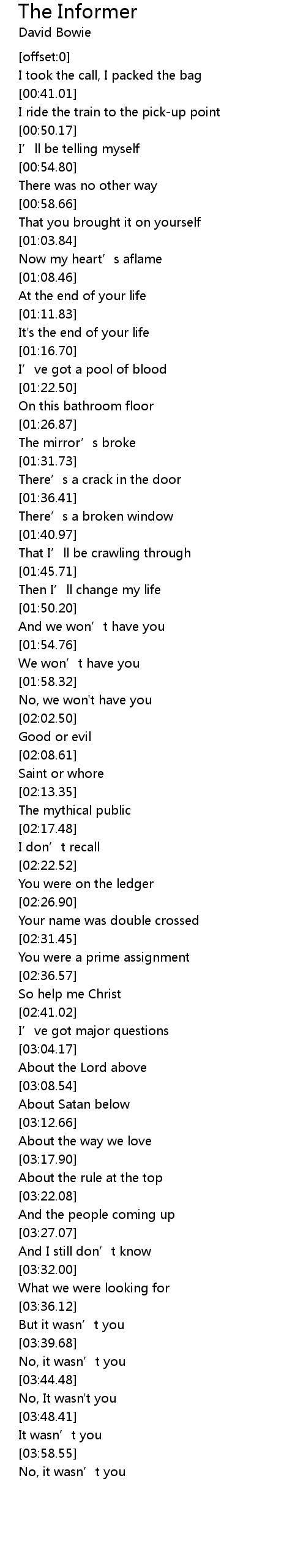 | [02:39.19] | So help me Christ |