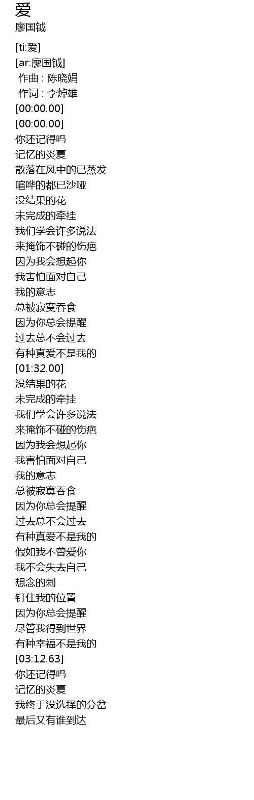 | [00:00.00] | 作词 : 李焯雄 |