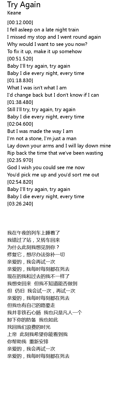 Baby I'll try again, try again |
