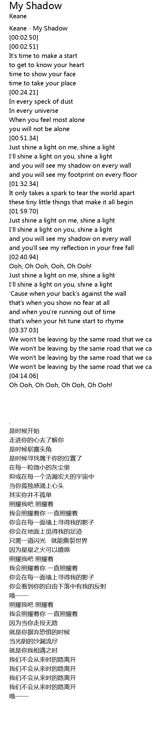 | [01:02.14] | I'll shine a light on you, shine a light |