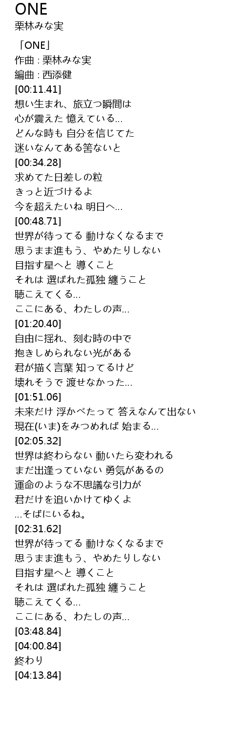 | [02:05.93] | 世界は終わらない 動いたら変われる |