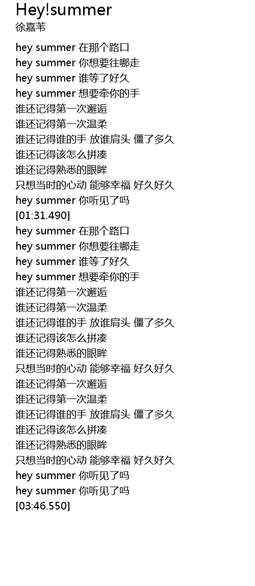 | [02:05.960] | hey summer shuí děng le hǎo jiǔ |