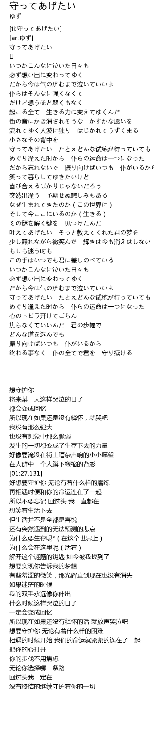| [01:33.451] | 守ってあげたい たとえどんな试练が待っていても |
