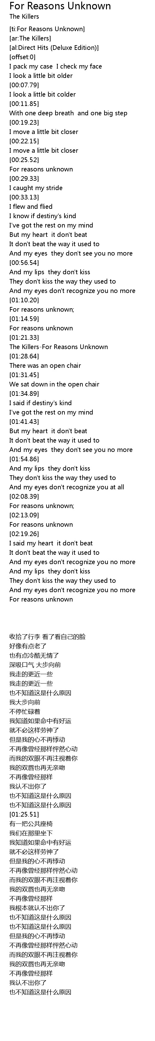 [ti:For Reasons Unknown] |