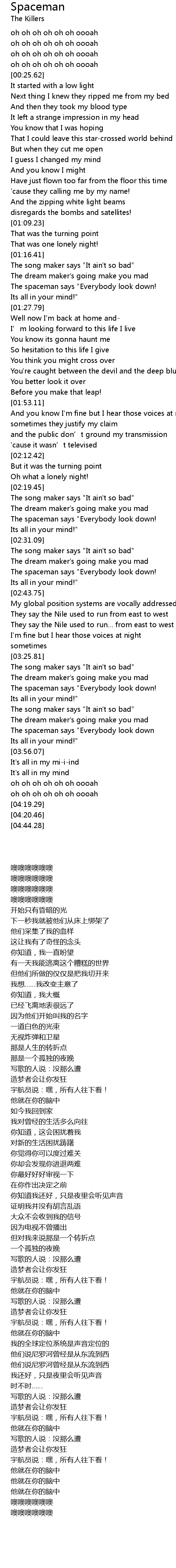 | [03:35.50] | The spaceman says " Everybody look down! |
