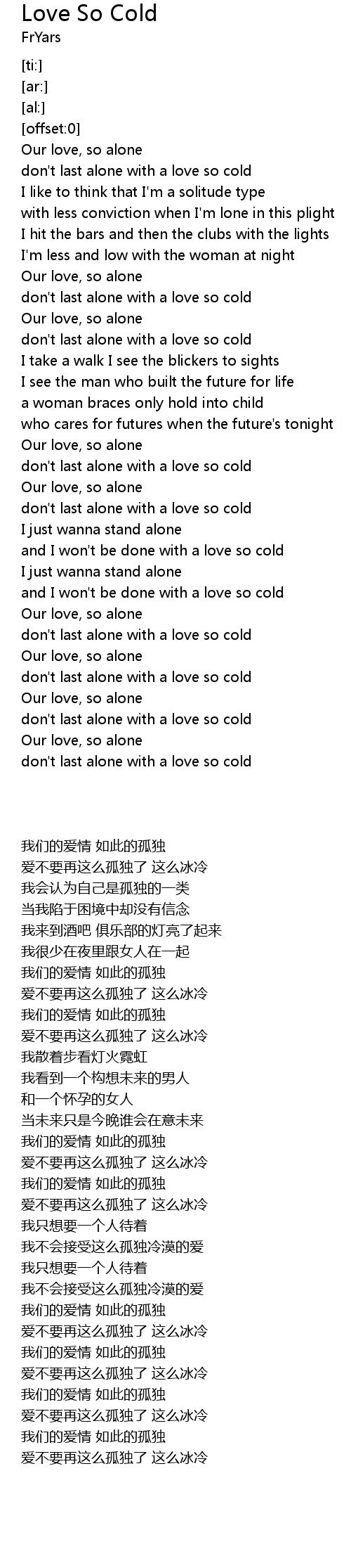 don't last alone with a love so cold |