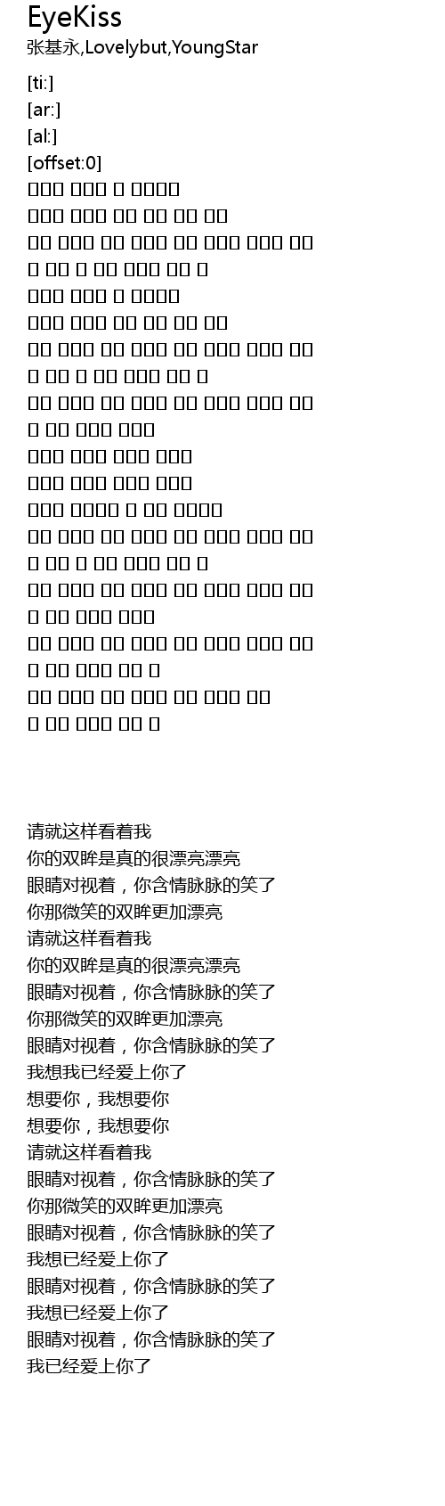 | [00:54.39] | 그대의 눈빛은 너무 예뻐 예뻐 예뻐 |