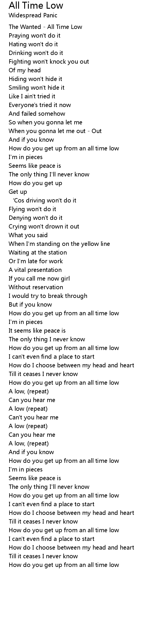 | How do you get up from an all time low | |