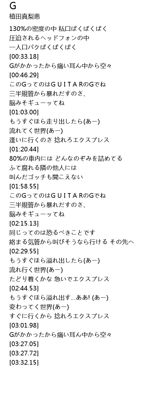 | [03:16.37] | Gがかかったから痛い耳ん中から空々 |