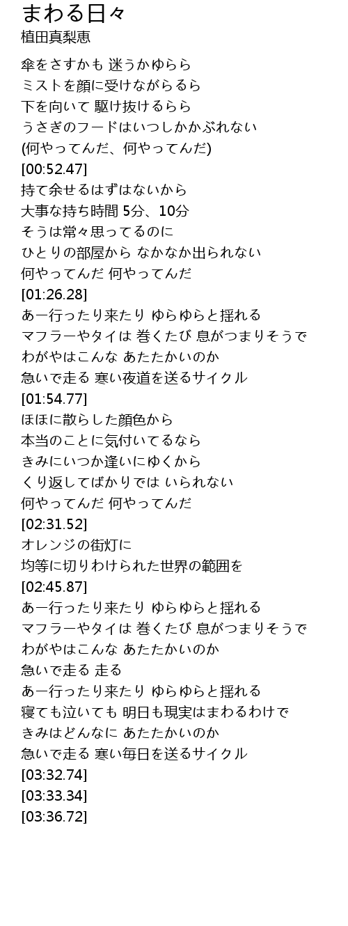 | [03:25.68] | 急いで走る 寒い毎日を送るサイクル |