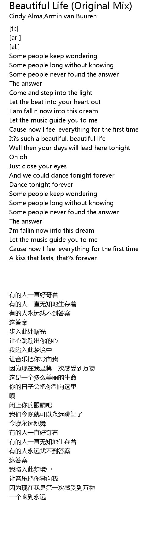 | 歌曲 | Beautiful Life (Original Mix) |