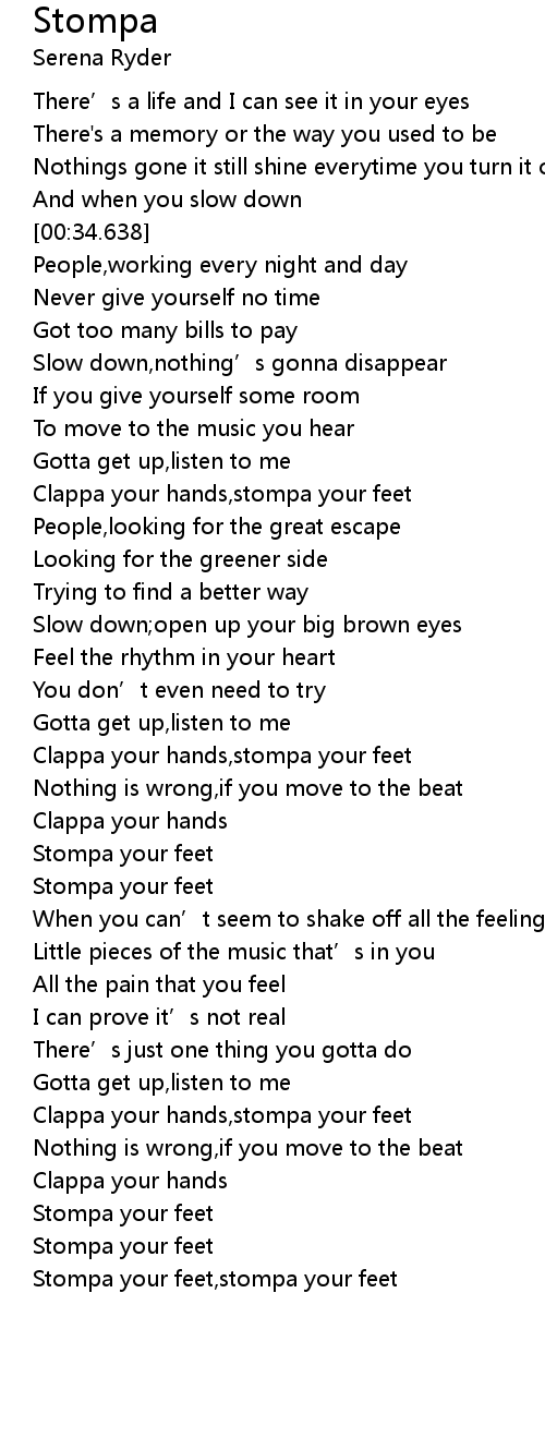| [01:48.952] | Clappa your hands, stompa your feet |