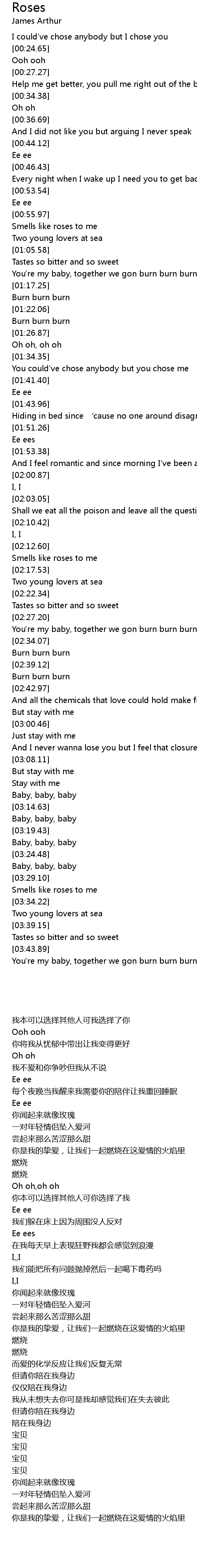 | [00:56.73] | 你闻起来就像玫瑰 |