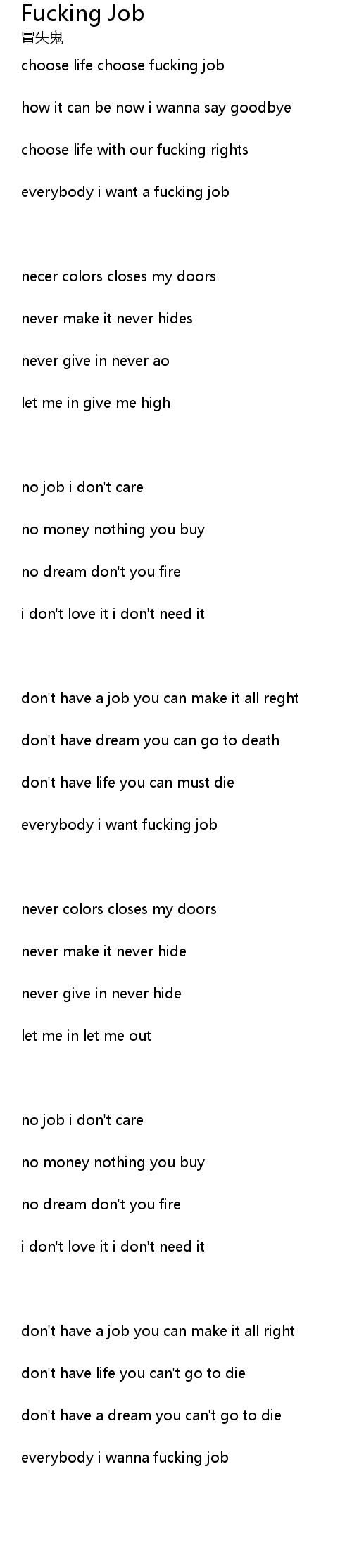 | everybody i want a fucking job | |