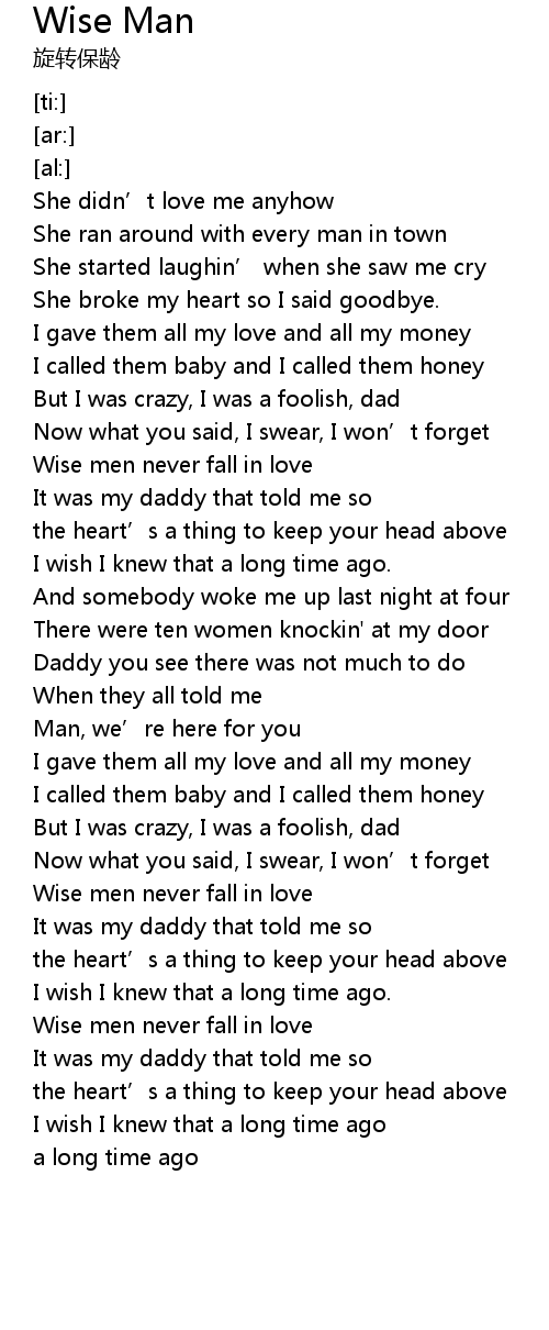 | [02:39.39] | Wise men never fall in love |