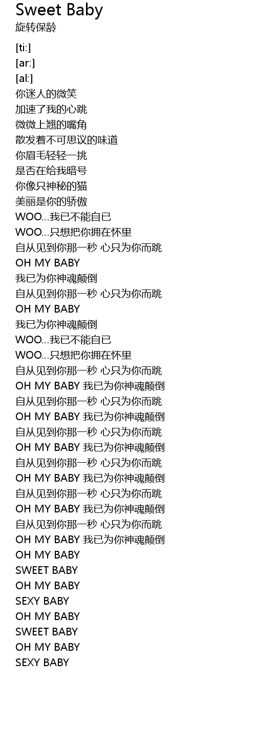 | [02:01.58] | OH MY BABY wǒ yǐ wèi nǐ shén hún diān dǎo |