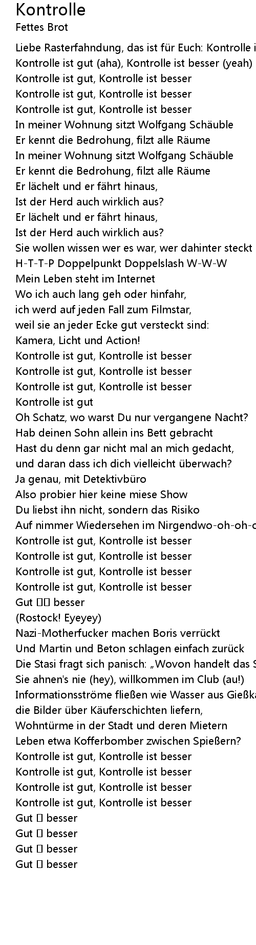 | Kontrolle ist gut aha, Kontrolle ist besser yeah | |
