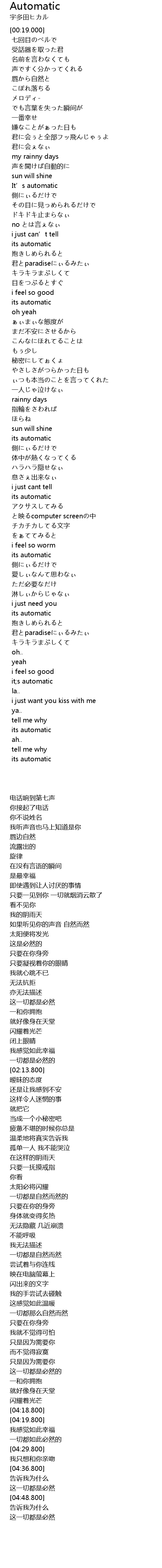 | 歌曲 | Automatic |