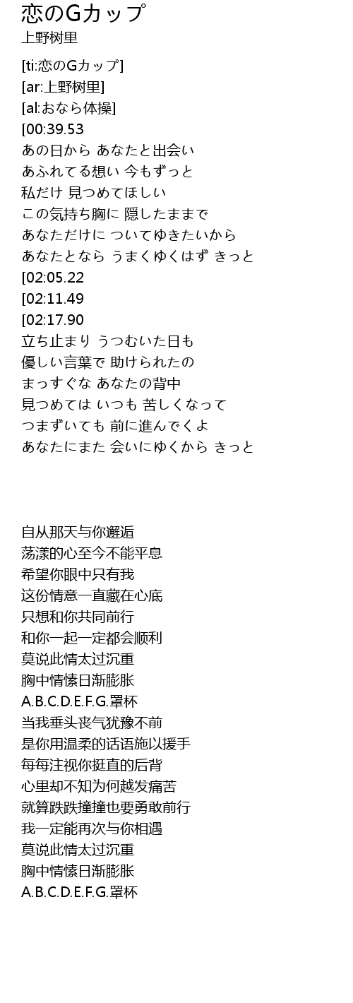 | [01:04.52][02:17.90] | A.B.C.D.E.F.G.カップ |