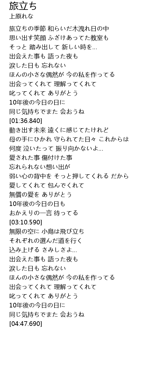 | [00:12.740] | 旅立ちの季節 和らいだ木洩れ日の中 |
