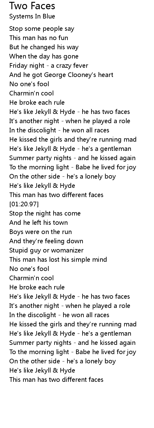 | [00:46.90] | He′s like Jekyll & Hyde - he has two faces |