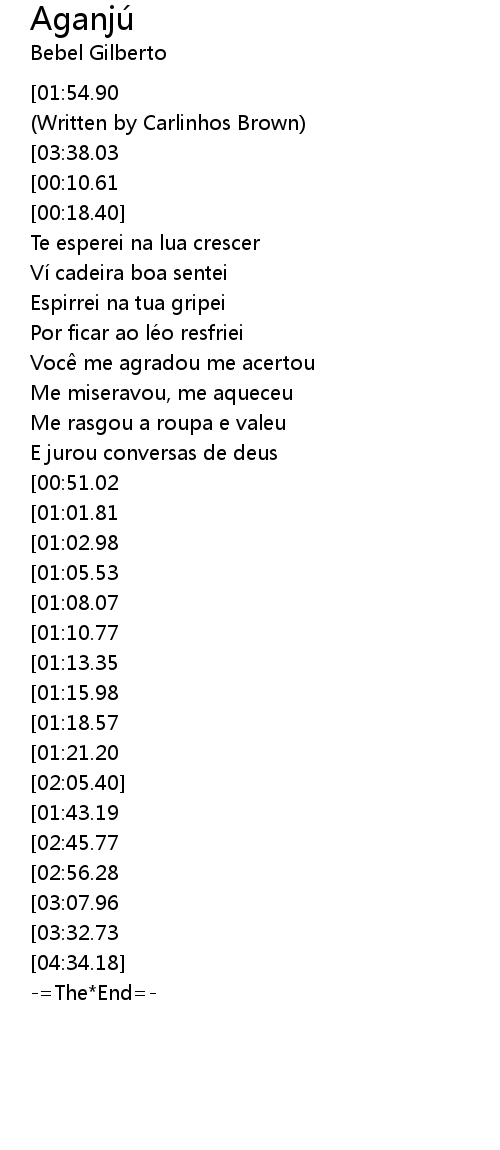 | [03:39.30][01:54.90][00:00.00] | Bebel Gilberto Aganju |