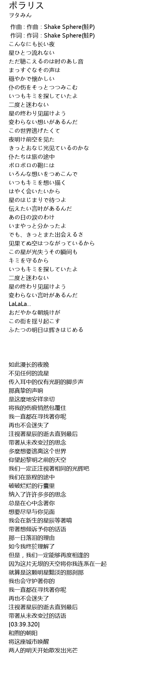 | [03:20.130] | 星の终わり见届けよう |