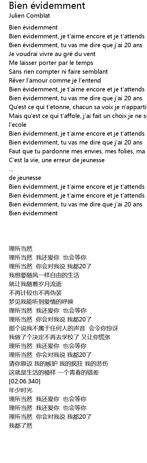 | [02:22.340] | Bien e videmment, je t' aime encore et je t' attends |