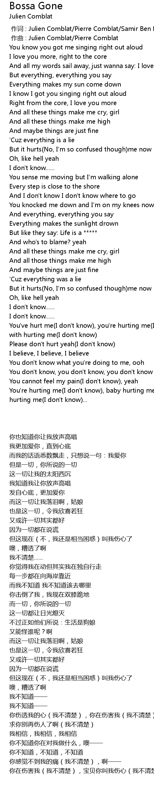 | [00:52.17] | But it hurts No, I' m so confused though me now |