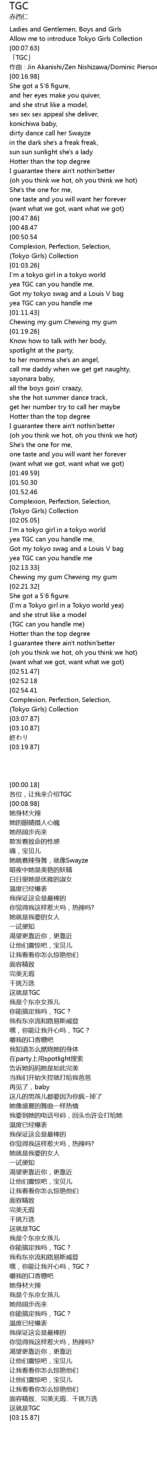 | [00:08.98] | 「TGC」 |