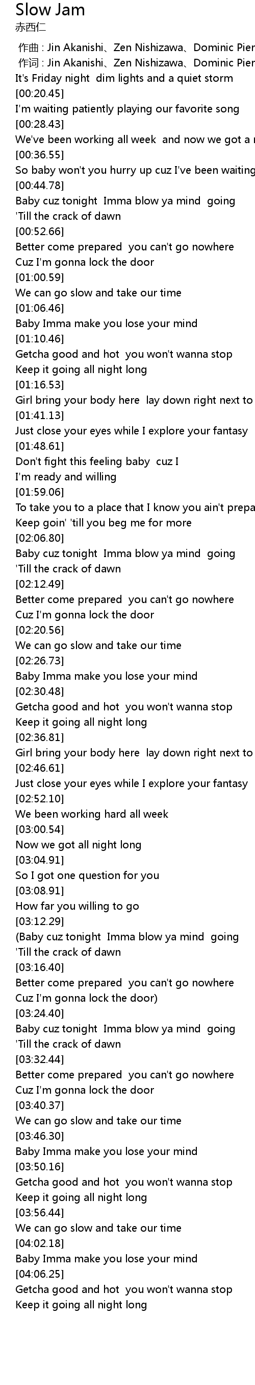 | 歌曲 | Slow Jam |