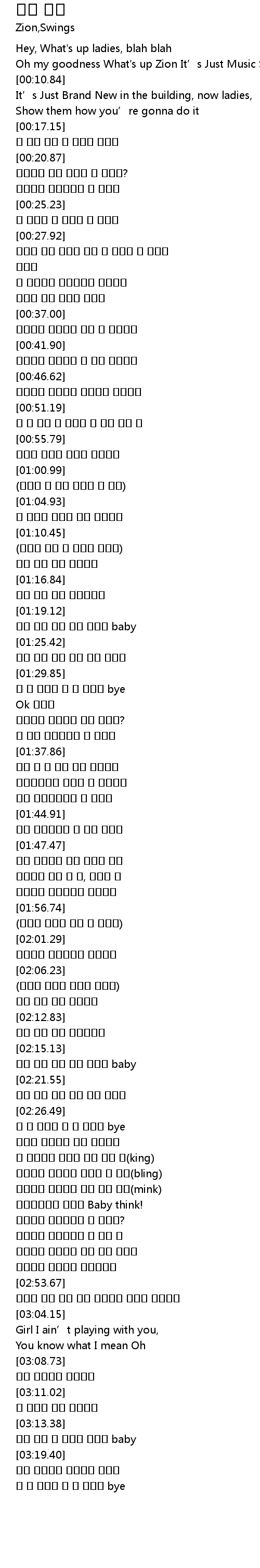 | [00:05.93] | Oh my goodness What' s up Zion It' s Just Music Swings |