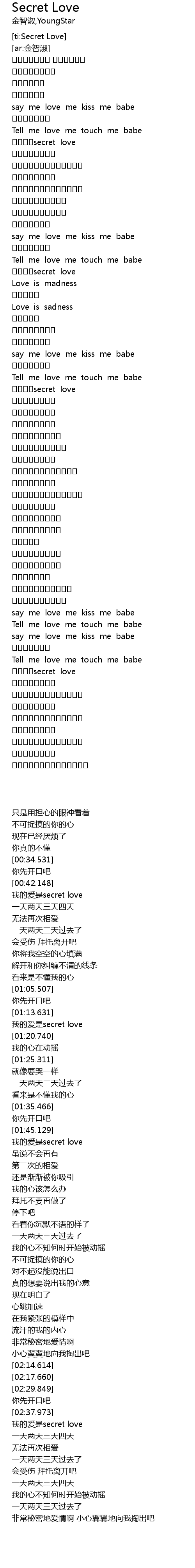 | [02:40.513] | 내사랑은secret love |