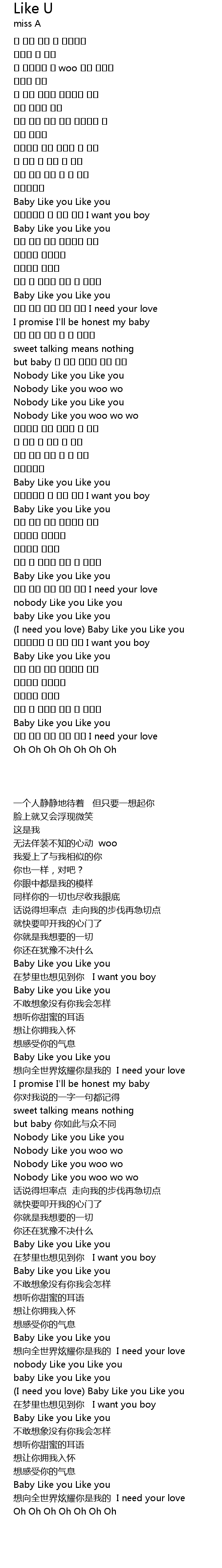 | [02:31.960] | Baby Like you Like you |